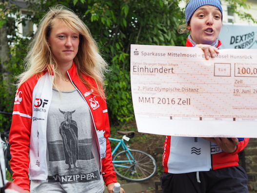 Bei den Damen gingen Palina Dubino, Anna Schloss, Silke Tesseraux und Joanna Tywczynski an den Start. Palina ging als 3. Frau nach dem Laufen auf die Radstrecke und dominierte nach den ersten 10 km das Damenrennen bis ins Ziel.