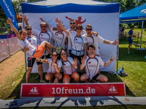 Zehn Triathleten – Ein Rennen – Ein Ziel – Dies war das Motto des zehn Freunde Triathlons in Dieburg.Dabei absolvierte jeder Sportler ein Zehntel der Langdistanz. Bei sommerlichen Temperaturen standen somit 380 Meter Schwimmen, 18 Kilometer Radfahren und 4,2 Kilometer Laufen auf dem Programm.