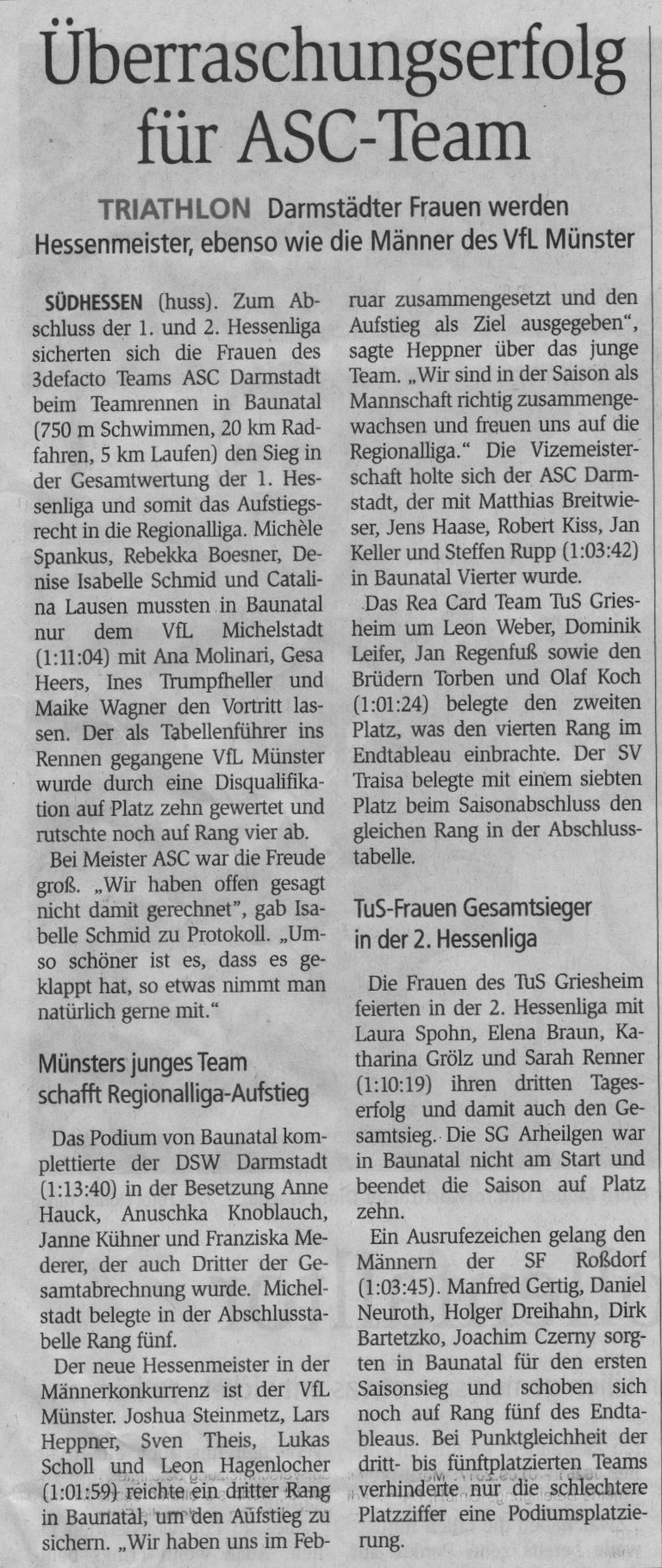 01.06.2018 – Auch ASC-Frauen auf dem Podium – Quelle: Darmstädter Echo
