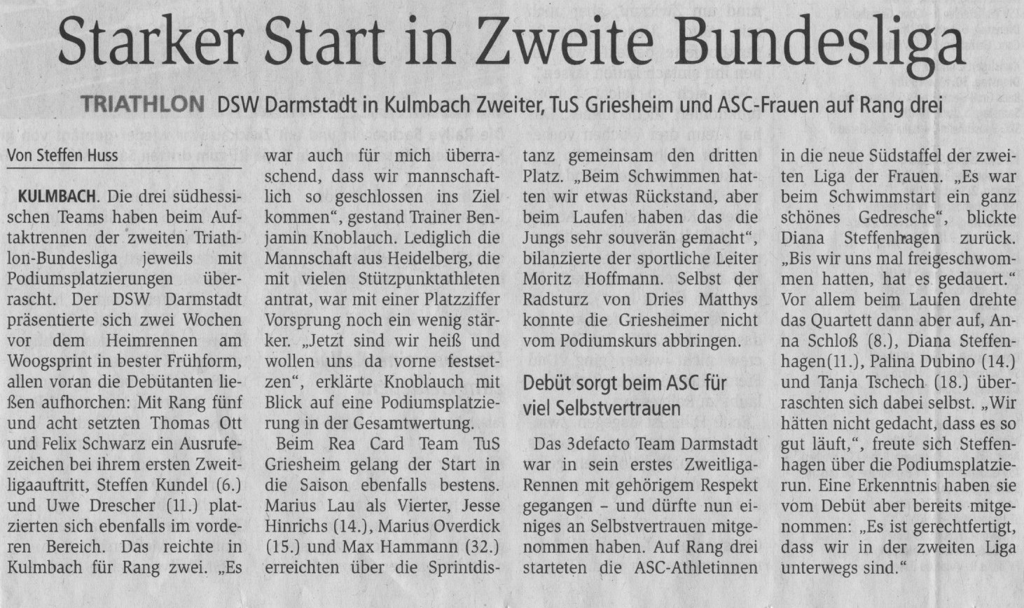 13.06.2018 – TRIATHLON Südhessische Erfolge beim Woogsprint – Quelle: Darmstädter Echo