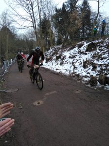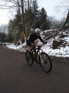Bergab ging es auf einer ausgewaschenen, schneebedeckten Spur mit drei Schikanen. Unten angekommen wurde nochmals kurz den Berg hoch gefahren bis zur Wechselzone. Die „Cross der Asse“ absolvierten zwei Runden laufen, vier Runden Rad fahren und am Schluss nochmals eine Runde laufen.