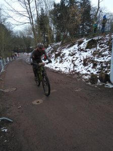 Beim 11. Int. BMW X-Duathlon „Cross der Asse“ am 4. März galt es eine Distanz von 5km Laufen – 23km Mountainbiken (mit 800hm!) – 2,5km Laufen zu bewältigen. Als der Start erfolgte, wurde eine Runde auf der durchweichten Aschebahn gelaufen, dann ging es aus dem Stadion raus auf Asphalt circa 500m bergab. Unten ging es in einen leicht matschigen und flachen Waldweg rein. Nach weiteren 500m wechselte der Belag wieder auf Asphalt und es ging wieder bergauf mit 25 Treppenstufen und weiter bis zur Wechselzone.
