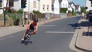 Die Anstrengung war den Teilnehmern beim Quarterman in Bruchköbel ins Gesicht geschrieben. Bei warmen Temperaturen und unter der grellen Sonne absolvierten die Mannschaften der 5. Hessenliga ein Viertel der Langdistanz. Nach 950 Meter schwimmen im Freibad, 45 Kilometer Radfahren durch die Bruchköbeler Hügellandschaft und 10,5 Kilometer laufen über Wiesen und auf Feldwegen überquerte Moritz Belmann vom 3defacto Team asc Darmstadt als erster Athlet der 5. Hessenliga die Ziellinie. Mit einer Gesamtzeit von 2:09:17 platzierte sich der Darmstädter deutlich vor Markus Respondek (TRIA-TEAM Bruchköbel) und Benjamin Junker (SPANNRIT Team TSG Kleinostheim). „Nach meinem schlechten Rennen in Fritzlar bin ich glücklich über das Ergebnis. Ich freue mich, dass ich der Mannschaft helfen konnte“, sagte Belmann. Ebenfalls eine starke Leistung zeigte Andreas Lutz. Mit der zehntschnellsten Schwimmzeit startete der Darmstädter in das Rennen. Auch auf dem Rad blieb er in den vorderen Rängen. Beim Laufen kam Lutz hervorragend in Schwung und kletterte weiter im Klassement. „Ich habe mich vor allem auf den ersten Kilometern sehr gut gefühlt und konnte ein gutes Tempo gehen“, erklärte der asc-ler. Mit der siebten Laufzeit kam Lutz als achter Starter der 5. Hessenliga ins Ziel.