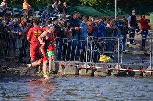 Dieser kam nach den 1,5 Kilometern im Hemsbacher See als erster asc-ler aus dem Wasser. Dicht gefolgt von Moritz Belmann gingen die Beiden auf die Radstrecke. „Das Schwimmen hat sich heute wirklich sehr gut angefühlt“, freute sich Keller. Dessen Rad allerdings nach 30 Kilometer streikte. Mit einem Platten fuhr der Darmstädter die letzten zehn Kilometer mit stumpfen Waffen und verlor so viel Zeit. Besser machten es Christian Morgenstern und Robert Kiss. Die beiden asc-ler pflügten durch das Feld und machten mit einer starken Radleistung Plätze gut. Morgenstern kam sogar als erster Darmstädter in die zweite Wechselzone im Viernheimer Stadion. „Ich fühle mich einfach wohl auf dem Rad“, erklärte er.
