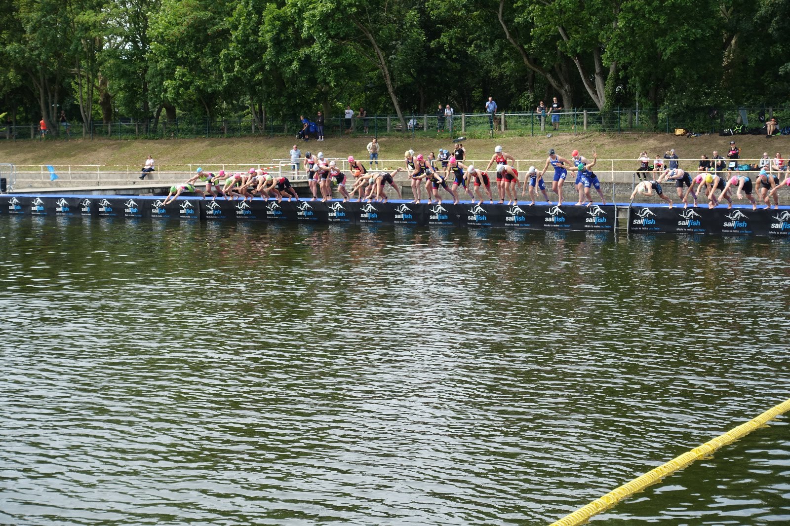 Krankheitsbedingt geschwächt gingen die Damen nur zu dritt an den Start. Denise kam als 23. dicht gefolgt von Anna (25.) aus dem Wasser. Gemeinsam konnten die beiden die 20km lange Radstrecke in einer größeren Gruppe absolvieren und ein paar Plätze gut machen. Mit dem drittschnellsten Wechsel und einem anschließenden Lauf in 21:29 erreichte Anna den 19. Gesamtplatz.