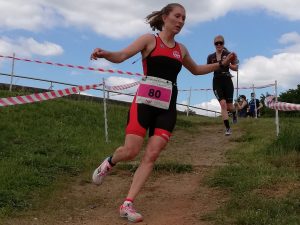 Für das Männer-Team des asc lief es nach dem durchwachsenen ersten Liga-Rennen beim DSW Swim & Run besser und man freute sich nach geschlossen guter Mannschaftsleistung über den 7. Platz in der Tageswertung. Insbesondere der starke Radfahrer Christian Morgenstern sowie Leander Lebeau, der kurzfristig zur Liga-Mannschaft gestoßen war, konnten sehr gute Leistungen im Mittelfeld erkämpfen. Das Frauen-Team musste leider verletzungsgeschwächt nur zu Zweit an den Start gehen. Während Palina Dubino nach einer Verletzung noch nicht ihre voll Leistung abrufen konnte, spielte Laura Rautenberg (im Bild) ihre Laufstärke aus und erreichte den hervorragenden 6. Platz in der Tageswertung.