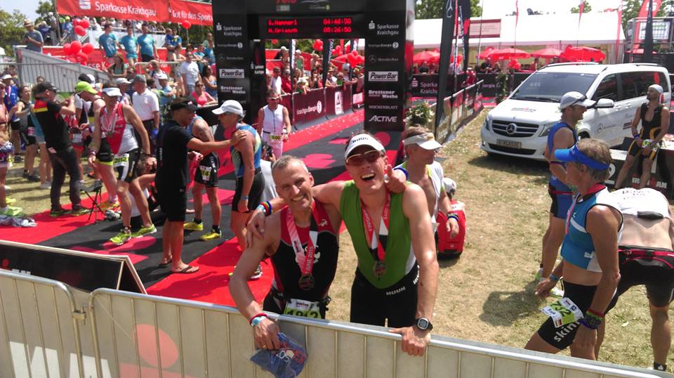 Leider ist Kai Trukenmüller auf den letzten Metern vorm Raceday noch krank geworden und musste darum auf seinen Start verzichten. So war es nun an Matthias Breitwieser und mir, die Kohlen aus dem Feuer zu holen…. und wie feurige Glut hat sich das Rennen dann letztendlich auch angefühlt! Doch der Reihe nach: Im feuchten Element war noch alles buisiness as usual. Zum Glück kein Neoverbot. Angenehm. Warm. Wenig Klopperei.
